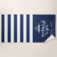 A perfect addition to your wedding welcome bags, or a sweet personalised honeymoon gift, this nautical navy and white striped beach towel features "two less fish in the sea" in white brush lettering with two kissing fish. Personalise with the couple's names, wedding date and location.