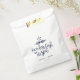 Wedding favour bags for coastal wedding celebrations feature two kissing fish with "two less fish in the sea" in navy blue brush script lettering. Perfect for summer weddings by the ocean, personalise these favour bags with your names and wedding date.