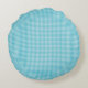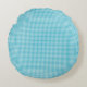 Two images of a round pillow with a blue chequered pattern. The first shows the front, the second the back. Both sides have the same design.