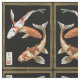 Two Japanese Koi Goldfish on Black Background Fabric