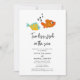 This invitation features two fishes and the phrase "Two less fish in the sea" written in a beautiful script font .