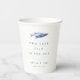Our coastal chic paper cup design for summer weddings, engagement parties or rehearsal dinners features a pair of blue watercolor fish. "Two less fish in the sea" appears in elegant navy blue lettering. Personalise with two lines of custom text.