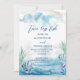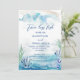 Two Less Fish in The Sea Summer Wedding Invitation. Our coastal chic design for summer weddings, engagement parties, or rehearsal dinners features a kissing pair of blue watercolor fish, Add custom text to the back to provide any additional information.