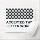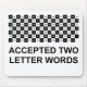 This black and white checked mouse pad lists all the accepted two letter words for the International game. These are also the words used for tournament play.