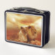 This is a standard metal lunchbox that appears to work just fine. We designed this box ourselves with an uploaded photo and custom text on the front and back. It looks absolutely beautiful except the front of the lunchbox is not centered like it shows in the photo. The print borders don't align with the inset flat part of the box where the preview photo online showed it perfectly centered in there. The back looks nice and centered though.