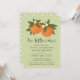 This adorable twin baby shower invitation features a hand drawn / painted oranges design with little blossoms over a custom colour background (shown in light lime green). Stylish typography reads, "Two Little Cuties" are on their way! The back contains a simple, matching orange blossoms pattern. Great for the mama expecting boy / girl twins!