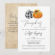 Two little pumpkins are on the way! Celebrate the expectant mum with a fall themed baby sprinkle invite. Two cute pumpkins in black and white buffalo plaid and classic orange add a bit of whimsy and rustic charm to the invitation. A sunflower adorns the orange pumpkin. The back features a realistic burlap print with a sweet poem. All details can be customised. This is the perfect gender neutral autumn baby shower invitation for expecting twins.