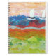 Two little sailboats, sailing across whimsical ocean waters of various colours, hand-painted as a mixed media work of art, making this notebook a delightful notebook to carry any day of the week.