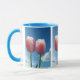 two lovely pink tulip flowers in blue sky. flower photo art.