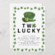 "Get ready to celebrate your little one's second birthday in style with our Sweet two Lucky Birthday Party Invitation! Featuring a playful "two lucky" headline, a cheerful leprechaun hat, and vibrant watercolor shamrocks in shades of green, this invitation is the perfect way to kick off the St. Patrick's Day festivities. Join us as we toast to another year of joy and laughter with your little lucky charm.