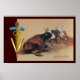 TWO LYING COWS GOLD CADUCEUS VETERINARY SYMBOL POSTER