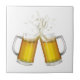 Two Mugs of Beer clink at a toast with a splash of beer foam.