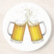 Two Mugs of Beer clink at a toast with a splash of beer foam.