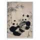 With a single black ink, painter depicts pandas by a full range of hues. Bamboo is painted tall and straight, with leaves swaying and singing to the wind. Chubby and cute, two giant pandas here are outlined by pale colour. Added with dark ink on their eyes, ears, and legs, the subjects characterise as plumpy and lovely. Twoness always has a propitious meaning in Chinese culture; a pair of chubby pandas further stands for reunions, harmony and happiness. Plants also have good meanings, such as bamboos suggesting intergrity. Depicting with these two fortunate objects, this picture thus is full of auspicious wishes.