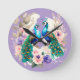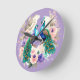 Two Peacocks Purple Round Clock