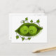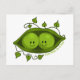 A green pea pod surrounded by green leaves. Inside the pod snuggled up together are two adorable peas with the cutest faces. Below is a text template reading Two peas in a pod, which you can use as it is or change to your own text.