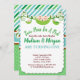 Celebrate your twins birthday party with this twins Two Peas In A Pod Couples birthday party invitations. This two peas in a pod birthday party features 2 babies in a green peas pod on stripes background. perfect for twins birthdayparty.