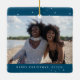 Two Photo Minimalist trendy atlantic blue colour Best Friend Snowfall Christmas Holiday Ceramic Ornament