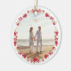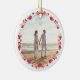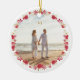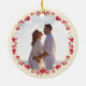 two photo christmas holiday botanical wreath ceramic ornament
