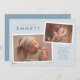 Two scrapbook style photos make this sweet blue birth announcement extra unique. Perfect to show off a couple photos alongside simple time. Introduce your new baby to friends and family in style with this card. The darker blue coordinating backer features sweet white dots.