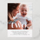 A simple Second Birthday invitation featuring your own photo and the words 'two.' over the top in real silver foil.