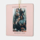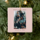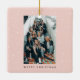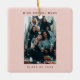 Two Photo Minimalist cute pink Snowfall High School College Best Friend Snowfall Christmas Holiday Ceramic Ornament