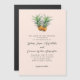 Pineapple magnetic wedding invitation template. Modern fonts in printed and script are easy to customise with your wedding information. Pale orange colour with black text and two pineapples at the top. The first line curves around the top over the pineapples.