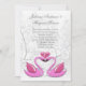 Two Pink Kissing Swans on a background of pale grey and white water and trees. Personalise with your own information. If you need to move the text or change the colour, size or font, click Customise It. White envelopes are included. These are perfect for the bride on a budget, because the rsvp info is included on the back, but a matching RSVP is available if you want it.