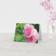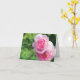 These two charming and delicately-coloured pink roses were photographed during a sunny Santa Monica morning. The words hello friend accompany the image for this note card.
