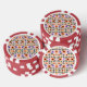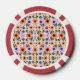 Two poker chips are shown, each featuring a floral pattern with orange, purple, and pink flowers against a white background, encircled by a bold red border.