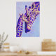 An affectionate mother and baby giraffe in shades of purple and blue.
