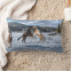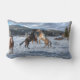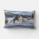 Two Ranch Horses Playfighting in Winter Snow Lumbar Cushion