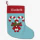 Two Red And White Candy Canes On Blue With Name Small Christmas Stocking