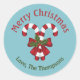Two Red And White Candy Canes On Blue With Text Classic Round Sticker
