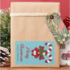 Destei's original illustration of two red and white striped Christmas candy cane treats decorated with a red bow and a Christmas holly / Common holly plant. The background colour is blue. There are also two personalizable text areas.
