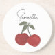 Two Red Cherries Illustration | Cute Fruit Art Coaster