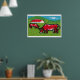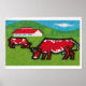 Two Red Cows Grazing Mid-Century Matchbox Label Poster