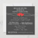 Black and white rustic country chalkboard vintage typography wedding invitation template. These chalk wedding invitations have two intertwined red hearts and "because we still believe in happily ever after." proclamation, as well as the traditional "Holy Matrimony". This simple and traditional chalkboard wedding invitation adds a touch of old fashioned wholesomeness!