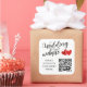 Square wedding website QR code sticker in black and white with elegant fonts and two red hearts, overlapping, one in a darker shade. Add the url to your wedding website to the premade QR code.