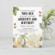 Roar into fun with our Two-Rex Dinosaur Birthday Party Invitation! Featuring a playful dinosaur design, this invitation is perfect for little ones who love prehistoric creatures. With vibrant colours and a fun, adventurous feel, it's sure to get everyone excited for a dino-mite celebration. Customise it with your party details for an unforgettable birthday bash that will have guests roaring with excitement! These invitations are a part of a birthday collection with coordinating items available.