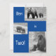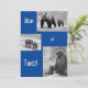 Images of pairs of animals on the front and birthday party details on the back on a blue background