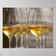 two rows of wine tasting glasses with lucious poster