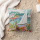 Two Sailboats and Cottage II by Karen Fields. Features two sailboats floating in the water surrounded by colourful flowers and cottages.