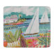 Two Sailboats and Cottage II by Karen Fields. Features two sailboats floating in the water surrounded by colourful flowers and cottages.