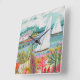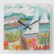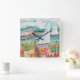 Two Sailboats and Cottage II by Karen Fields. Features two sailboats floating in the water surrounded by colourful flowers and cottages.