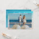 Two sand dollars photo save-the-date flat cards with text on both sides. Big, natural keyhole sand dollars decorate the front. A large photo of the couple is tucked under the seashells with a sea and sand background image. At the top, customise the shadow text in blue to say either "save the date" or "save our date". On the back, add wedding announcement information line by line in alternating script and printed text. The date stands out larger than the rest. Made for this 5x7 inch size, and changing the size means the images may not fit correctly. Cards will print as you see them!