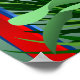 Red parrots on a branch in jungle among tropical leaves