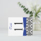 Two-sided Black, White, Blue Damask Table Number Postcard