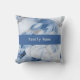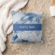 An throw pillow in dark blue, white and light blue marble liquid ink colours. The design is a dreamy romantic and elegant design with gold and silver traces like the coastal sea breeze shimmers. It looks like an abstract marmor stone texture and fluid lava at the same time. This design fits perfect in coastal homes and makes the breeze come into your room. The clue of this design is a different two sided design, on front with a marble design and a blue stripe for your monogram and on the backside the plain marble pattern.
