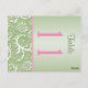 Two-sided Green and Pink Damask Table Number Postcard
